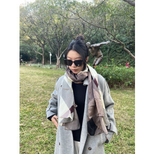 버버리 매장 동일 상품, 100% 실크 새틴 소재의 긴 스카프입니다. 부드러운 촉감으로 사계절 착용 가능하며, 사이즈는 90×190cm입니다.