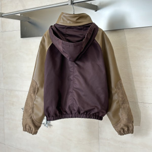Loewe 2026 초봄 컬렉션 가죽 배색 후드 집업 재킷입니다. 한 달 반에 걸쳐 제작된 오리지널과 동일한 스웨이드와 광택 가죽 소재로 제작되었습니다. 오리지널 드로스트링 후드와 래글런 슬리브 디자인을 재현했으며, 가슴 앞면에는 세련된 엠보싱 로고가 새겨져 있어 디테일이 완벽합니다. 안감은 대조적인 컬러의 니트 소재로 제작되었으며, 소매와 밑단은 신축성 있는 소재로 마감되었습니다. 사이즈: 46/48/50/52