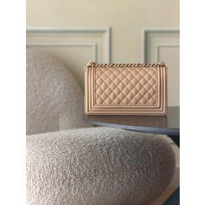 전혀 새로운 26A Leboy 경전 핫맘 스타일! 마름모꼴 퀼팅과 소볼 텍스처가 특징인 미디엄 사이즈, 살구색/가죽 안감으로 제작되었습니다. 클래식에 경의를 표하는 디자인으로, 중성적이고 멋지며 용감하고 진실한 상징성을 담고 있습니다. 코코 샤넬의 태도를 상징하며 샤넬의 정신을 체현한 작품입니다. 코코 샤넬이 평생 사랑한 디자인으로, 출시와 동시에 수많은 여성들의 마음을 사로잡은 아이템입니다. 소재는 Haas 소볼 텍스처 소가죽을 사용했으며, 하드웨어는 원팩토리 두꺼운 도금 유금으로 제작되었습니다. 사이즈: 25*15*9cm