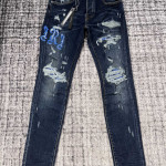 AMIR 브랜드 깊은 네이비 데님 팬츠